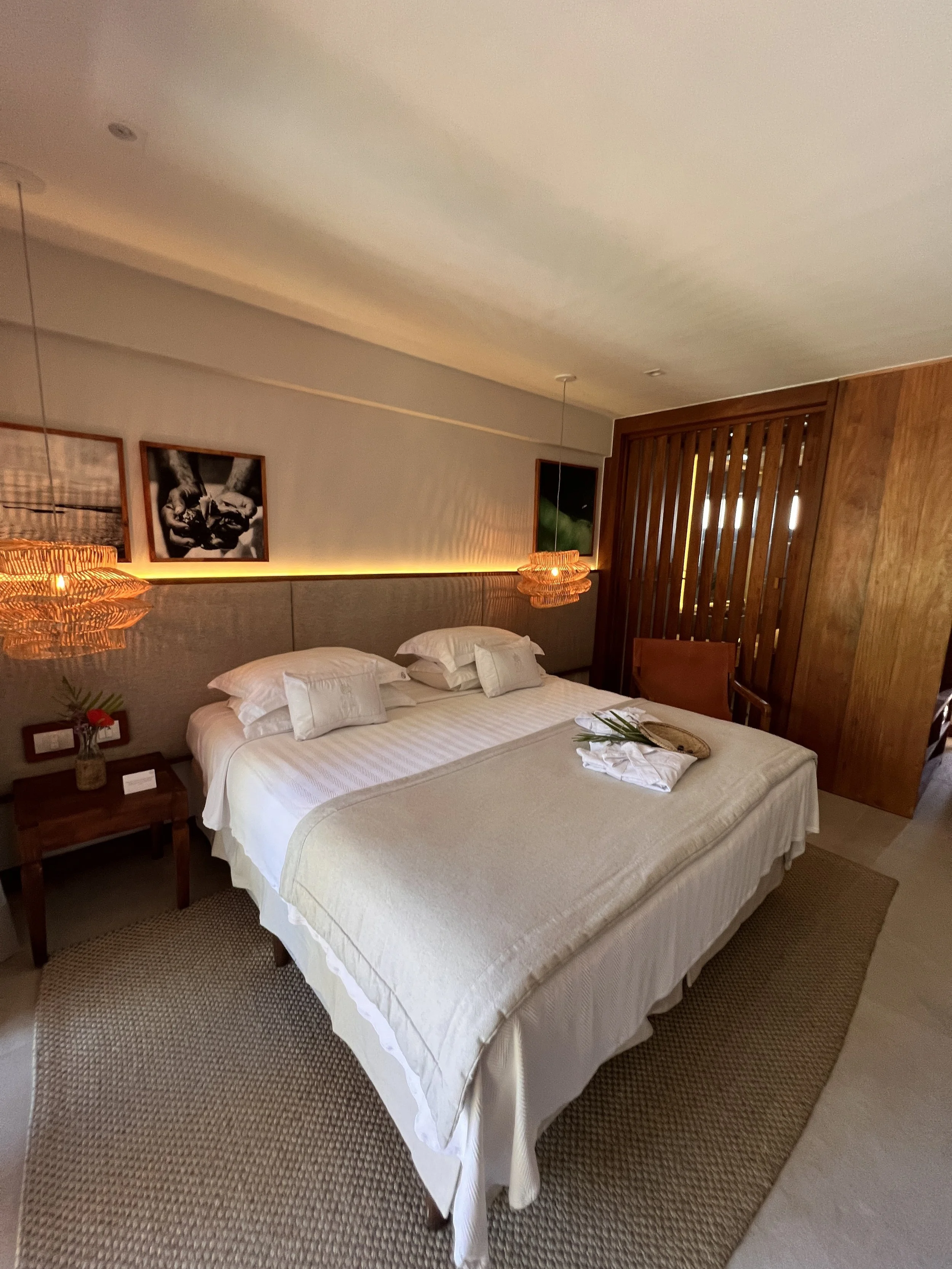 Ideal para viver momentos especiais, nossa suíte está localizada no térreo, possui vista para nosso jardim e é um convite para desconectar do exterior e focar em cada experiência vivida aqui.